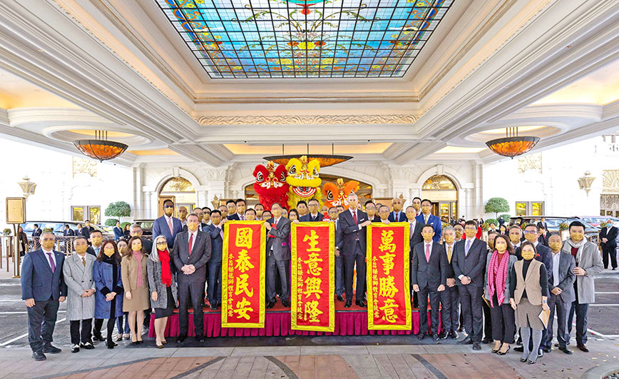 昨日上午,在呂耀東先生的帶領下,一眾銀娛管理層成員,包括:董事程裕昇先生、首席營運總監—澳門祁嘉杰先生、綜合娛樂服務部高級董事葉燕民先生、法律部高級董事郭敏生先生、博彩部高級董事樂啟誠先生、資訊系統科技部董事韓志棟先生、項目發展部董事丁廣沅先生、星際酒店及娛樂場營運副董事李福成先生等先後於星際酒店正門及「澳門銀河」鑽石大堂外,參與拜神及點睛儀式,祈求新一年社會繁榮昌盛,百業興隆。多頭絢麗多彩的瑞獅在歡呼及爆竹聲中揮舞躍動,現場人聲鼎沸,喜慶熱鬧。