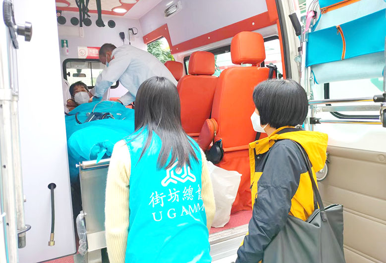 工作人員接到求助後立即啟動應急機制:首先社工指引家屬向醫院瞭解曾生的身體情況,確定適合轉院後,立刻與中山市委統戰部、中山市中醫院、澳門消防局等部門溝通協助轉運事宜,在評估與做好相關轉運準備後,經過多方配合,2月14日上午11時,街總工作人員護送曾生及家屬上救護車前往珠海拱北口岸與澳門醫護人員交接。下午二時,終於成功將曾生送往山頂醫院接受治療,後續將由街總屬下長者服務的社工支援在澳的情況。
