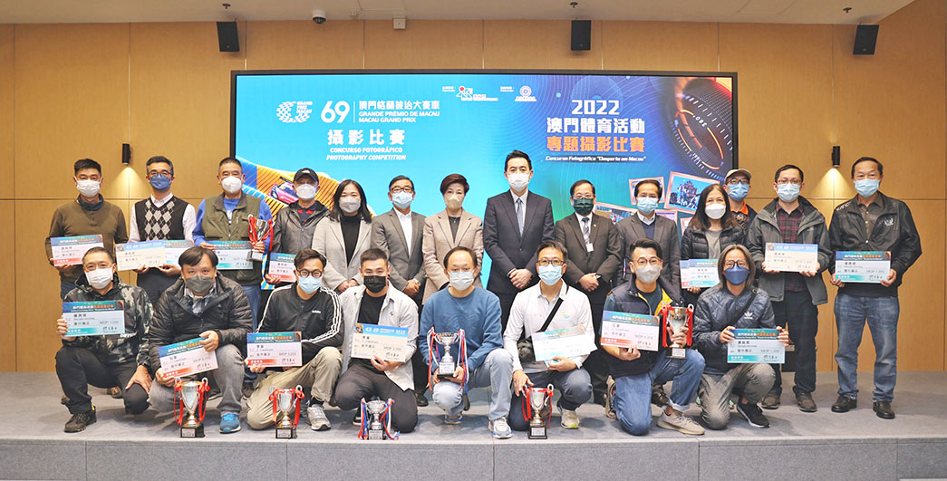【特訊】由體育局主辦,澳門攝影學會協辦的2022「澳門體育活動」專題攝影比賽,以及第69屆澳門格蘭披治大賽車攝影比賽均已順利完成。頒獎儀式於昨日(2月17日)下午六時半在體育局西翼辦公樓地庫一樓會議室進行,出席的嘉賓包括:體育局副局長劉楚遠及林蓮嬌、廳長李詩靈及鄒國偉、澳門攝影學會會員大會副主席馬志信、澳門攝影學會副理事長梁炎佳。本次比賽的精選作品將於本年2月17日起於體育局官方網頁進行線上展覽(https://www.sport.gov.mo/zh/calendary/type/item/id/9209),歡迎市民到上述網址瀏覽。如欲了解更多大眾體育活動詳情,歡迎瀏覽體育局網頁www.sport.gov.mo,關注「澳門大眾體育動向」Facebook專頁、「澳門體育」微信公眾號及「澳門特區體育局」微信訂閱號。