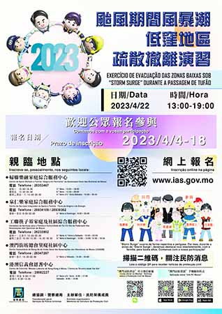 【特訊】為強化本澳防災應急的聯動能力,持續提升社會大眾的憂患意識,民防架構將於4月22日(星期六)舉行代號“水晶魚2023”民防演習,屆時將會模擬執行“颱風期間風暴潮低窪地區疏散撤離計劃”,並邀請市民共同進行實地演練,以深化市民大眾對疏散撤離的認知,提升協作精神。