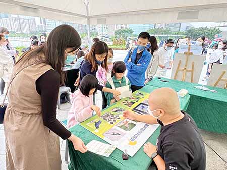 科教展闆區主要吸引成人團體和家長駐足觀看,有專業人士現場針對橫琴陸生野生脊椎動物調查成果影片和橫琴生物多樣性展闆諮詢,瞭解合作區生態資源現狀、鳥類種類和國家級重點保護動物數量等資訊,並向工作人員詢問合作區爬山、郊遊、觀鳥路線,表示希望日後能參與合作區生物多樣性保護活動。