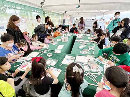 相比于寓教於樂的遊戲,野鳥DIY工作坊更受各年齡段兒童的歡迎,開攤之前已有小朋友帶家長前來排隊。工作人員向參加活動的小朋友們介紹鳥類羽毛顔色的特點和功能,再教導他們使用顔料和卡紙繪制喜愛的鳥類。家長也看得津津有味,認真學習橫琴鳥類的介紹,與孩子共同創作,手繪作品兼具創意與自然風格。