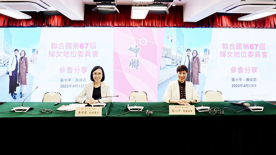 本屆婦地會年度會議三月在美國舉行,婦聯總會副秘書長黃梁君、常務理事區小平隨特區政府代表加入中國代表團參會。她們分享表示,本屆會議主題為「創新和技術變革以及數字時代的教育,促進實現性別平等及婦女和女童賦權」,強調數位化時代下在經濟、技術飛速發展的過程中必須確保不落下婦女和女童。透過會議,認識到不同國家推動兩性平等的進展和困難,更深入了解到我國婦女在推動婦幼工作、維護國際安全、促進共同發展付出的努力。同時充分利用參會機會,向來自全球不同國家代表推廣澳門婦聯,分享和交流婦女工作經驗,亦分享了澳門在過去三年抗擊疫情中婦女所貢獻的力量,收獲良多。作為婦女工作者,將汲取國際先進經驗,繼續著力推動兩性平等,助力落實《北京宣言》和《行動綱要》,為實現二○三○年可持續發展議程創造更多機遇,貢獻巾幗力量。