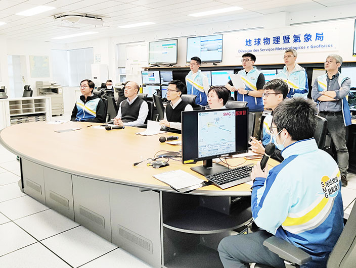 【特訊】為持續提升對熱帶氣旋和風暴潮的預報預警及應急處理能力,地球物理暨氣象局日前進行了內部熱帶氣旋演習,以檢視和優化各相關工作程序、測試系統運作及強化各工作崗位的溝通與協調。演習結束後,局方進行了檢討會議,透過聽取不同崗位之工作人員的回饋意見,檢視和完善不足之處,制定優化方案,從而持續強化各崗位的協作機制,提升應急處理能力。