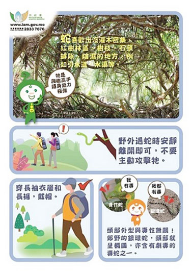 【特訊】春暖花開,天氣宜人,是郊遊的好時節,同時萬物復甦,春天至初冬亦是蛇類活動最頻繁的季節。市政署提醒市民在行山郊遊時一旦遇見蛇,應保持鎮定,避免驅趕或接觸,與野生動物和諧共存。