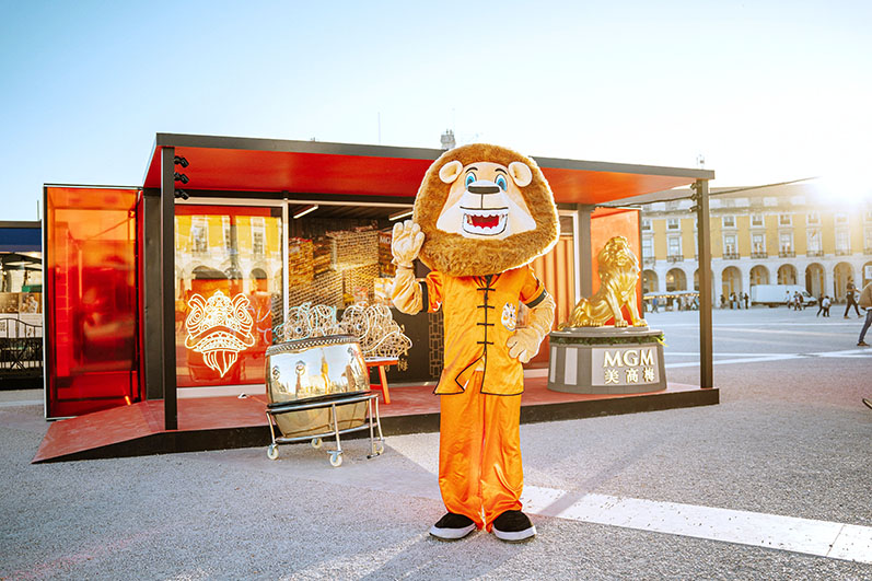 美高梅為是次推廣活動帶來中葡文化交融的展位,展示其極具代表性的外牆特色,並巧妙地與里斯本的商業廣場完美融合。展位亦設有標誌性的金獅像與具有濃厚嶺南文化特色的醒獅擺設,供客人親身體驗嶺南醒獅文化,盡展美高梅多元文旅產品質素,並立體化地向當地居民及在地旅客推廣澳門特色旅遊。