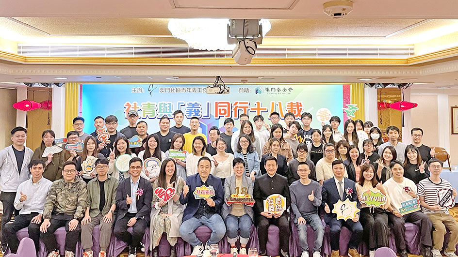 【特訊】由澳門社區青年義工發展協會主辦,澳門基金會贊助的『社青與「義」同行十八載』於五月十三日晚上假濠璟酒店麗景軒中餐廳 舉行,中聯辦社工部處長李宇鵬、教青局青年發展處處長譚兆華、街坊總會會長吳小麗、群力智庫副理事長兼立法議員顏奕恆、義工總會理事長鄧文基、街坊總會社會服務辦公室副總監張婉思、社青義協會長陳洪華、理事長梁潔環及各友好青年單位代表出席了活動。