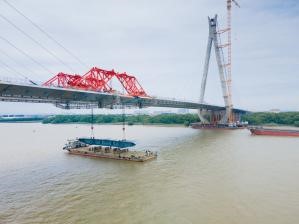 【中新社廣州5月21日電】(記者 蔡敏婕 郭軍)粵港澳大灣區工程南(廣州南沙)中(山)高速洪奇門特大橋21日合龍。一橋飛架珠江,廣州、中山兩市在此實現跨江“牽手”,大灣區互聯互通按下“加速鍵”。