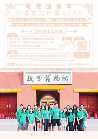 【特訊】由澳門特別行政區政府文化局、香港特別行政區政府民政及青年事務局、廣東省青年聯合會主辦的“粵港澳青年故宮實習計劃2023”將於7月14日至8月26日舉行,即日起至5月31日接受符合條件的澳門青年報名,實習計劃可提供申請的崗位包括故宮博物院宣傳教育部、文創事業部、宮廷歷史部、器物部、國際交流處、古建部、世界遺產監測部、文物保護標準化研究所、展覽部及考古部等10個部門,涉及14種博物館工作的範疇。