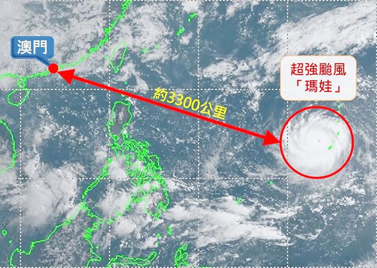 氣象局表示,於西北太平洋洋面上,熱帶氣旋「瑪娃」悄然生成,近日更增強為超強颱風,並吹襲關島一帶。隨後「瑪娃」是否會對本澳造成影響?於本月二十五日早上八時,超強颱風「瑪娃」正以西北偏西方向移動,趨向呂宋以東海域,與本澳相距約三千三百公里。