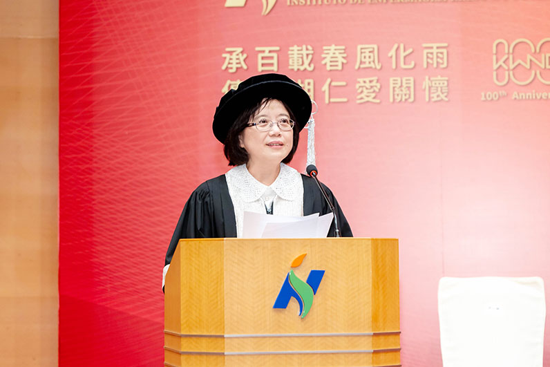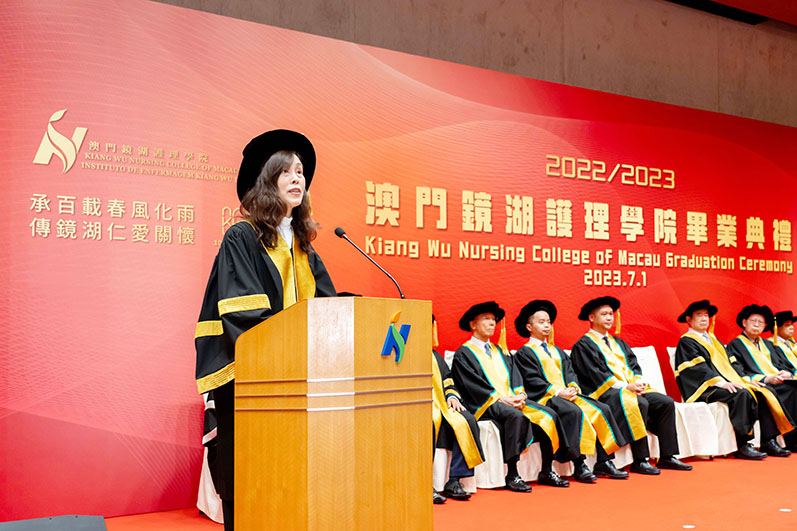 她希望畢業生繼續傳承「愛國愛澳」的優良傳統,積極配合澳門特區經濟適度多元和大灣區深合區的融合發展,在融入國家發展大局中實現自身更好的發展。