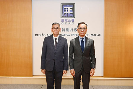 陳子勁歡迎香港廉署代表團到訪,他指出澳港兩地在反貪工作,特別是個案協查和情報交流方面一直保持良好合作,在防貪宣傳及人員培訓上,香港廉署也有很多值得借鑑和學習的地方,會繼續鞏固彼此合作關係。並同意應共同拓展與大灣區反貪機構的交流和合作。
