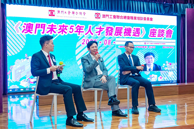 同場設辦《澳門未來五年人才發展機遇》座談會,邀請到澳門銀行公會主席 葉兆佳、華南師範大學 趙淦森教授,現場與澳門工會聯合總會副理事長 梁孫旭一同就金融業、資訊科技業、本澳勞動市場三個維度進行深入探討,分享未來人才於本澳及大灣區發展的機遇,並與參與者有熱切互動,為蒞臨嘉賓帶出一些培訓的思路,為未來搭建行業人才梯隊提供靈感。