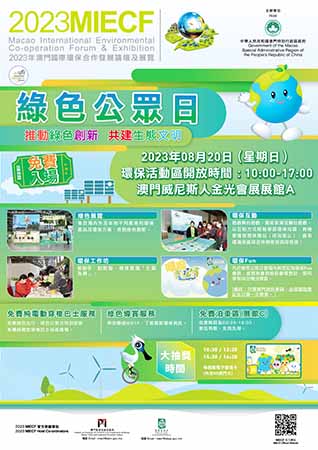 【特訊】由澳門特別行政區政府主辦,澳門貿易投資促進局及環境保護局承辦的“2023年澳門國際環保合作發展論壇及展覽”(2023MIECF),將於8月17至20日假澳門威尼斯人金光會展舉行,以“推動綠色創新 共建生態文明”為主題。其中,周末兩天免費開放予公眾入場參觀,而最後一天(8月20日)定為“綠色公眾日”,公眾可透過參觀綠色展覽及參與環保宣教活動,了解最新環保資訊及技術,提升環保意識。
