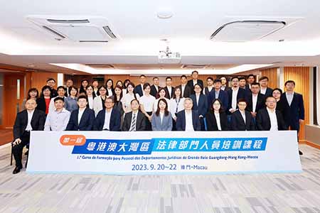 為更好推進粵港澳大灣區的規則銜接和機制對接,廣東省司法廳、香港特區政府律政司及澳門特區政府行政法務司於去年舉行的粵港澳大灣區法律部門第四次聯席會議上通過了由澳方提出的舉辦粵港澳大灣區法律部門人員培訓課程的方案。三方並達成共識,由澳門特區政府舉辦第一屆培訓課程,廣東省司法廳以及香港特區政府律政司派員來澳參與。培訓課程內容包括澳門基本法律體制、民商事、刑事、行政、訴訟制度以及登記和公證法律制度的專題講座,亦就訴訟外爭議解決機制的法律制度及實務經驗進行了分享。此外,學員實地參訪了澳門特區檢察院和登記公證機關,進一步促進學員的相互交流對話及對實務工作的了解。