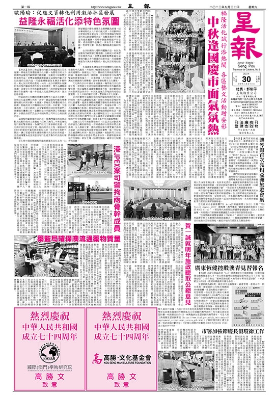 【特訊】適逢中秋及國慶黃金周,預料長假期間來澳遊客將有所增加。為保持城市整潔和衛生,市政署將加強各區的清潔力度、於人流暢旺區及旅遊景點增設垃圾桶、加強管理及清潔公廁等,致力為市民及遊客提供美潔衛生的環境。