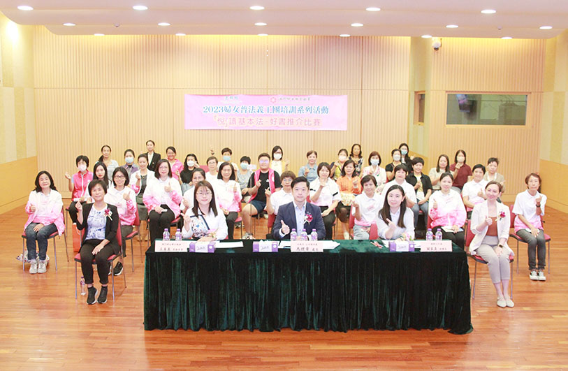 【特訊】為紀念《中華人民共和國澳門特別行政區基本法》頒佈三十周年,由法務局及婦聯總會合辦的「二○二三婦女普法義工團培訓系列活動」,日前在婦聯綜合服務大樓何賢禮堂舉行「‘悅’讀基本法──好書推介比賽」。活動冀推動婦女普法義工團學員自主閱讀與《澳門基本法》相關的書刊,形成學習《澳門基本法》的良好氛圍,同時鼓勵他們將有關書刊推介予家人和朋友,養成學法普法的習慣,繼而積極投身知法普法工作,弘揚澳門愛國愛澳的優良傳統。