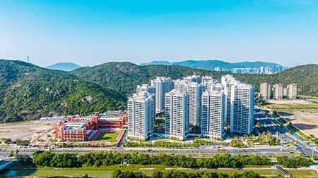 一、項目位置:澳門新街坊位於橫琴粵澳深度合作區祥順路388、389號,位處於深合區中心,背靠小橫琴山、面臨天沐河,形成「好山、好水、好環境」。樓宇之間均由風雨連廊連接,為居民出行遮陽擋雨;公共區域的街燈、欄杆、地面,融入南歐風格,葡式石面廣場等澳門特色元素,構築獨有的親切感。