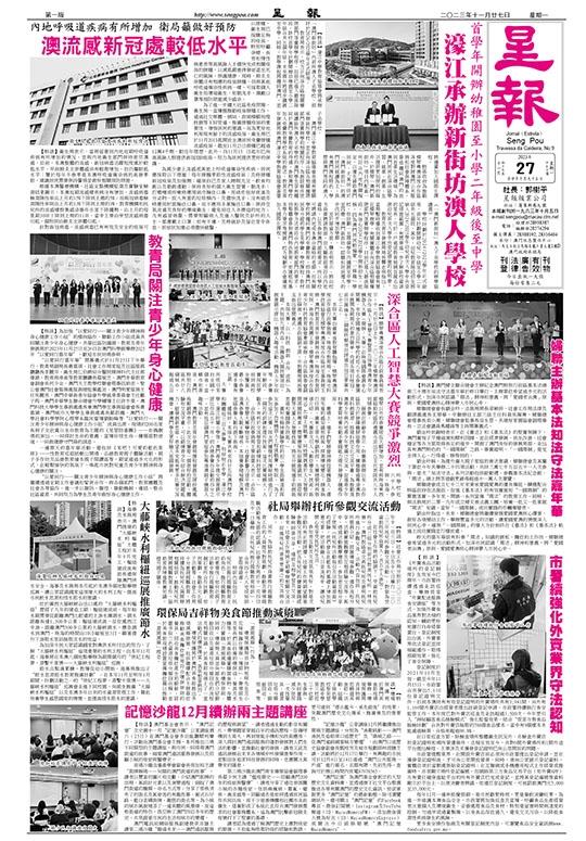 【特訊】澳門基金會表示,“澳門記憶”文史網十一月“記憶沙龍”公眾講座週六(25日)在澳門基金會多功能廳順利舉行,活動由澳門基金會主辦,本月推出三場不同類型的主題講座,與市民一同探尋澳門街道的故事、細看澳門通訊服務發展以及回顧小城的疫症與醫療史。