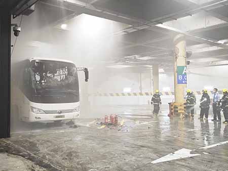 消防迅即控制火勢,不久將火救熄,肇事的旅遊巴嚴重焚燬。消息稱,事發時該旅巴無人,事件中無人受傷。消防其後不停向旅巴射水降溫,又出動排煙車抽走濃煙,其後向肇事的旅遊巴司機了解情況。至下午近五時,塔石廣場地下行車道恢復通車,交通亦恢復正常。消防局正進一步調查起火原因。