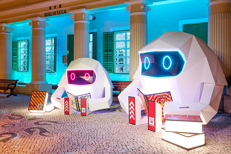 今次,金沙中國有限公司特邀日本知名藝術家田中信為活動全新設計「路環大使」,於路環多個地標閃亮登場,包括船人街、路環碼頭及前地、市亭前地、路環圖書館及水泉公地(路環壹號公寓前庭)。一系列創意光影藝術裝置以「T-BOY」為名,包括冒險大使、海員大使、蓮花大使、塗鴉大使和文青大使等不同角色,巧妙地融合了日本紙雕、街頭藝術以及中葡文化元素,奏響澳門多元文化交融的美妙樂章。