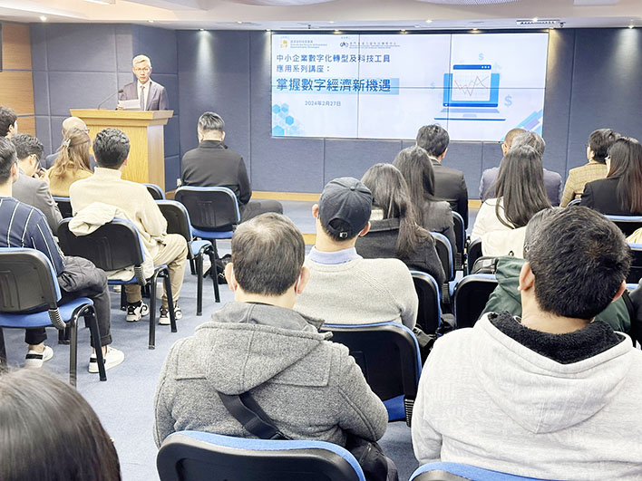 【特訊】由經濟及科技發展局及澳門生產力暨科技轉移中心合辦的“中小企業數字化轉型及科技工具應用系列講座:掌握數字經濟新機遇”分享會已於昨日(27日)舉行,線上線下約九十間來自餐飲、零售、生活服務等商戶代表參加。三位專家就創新金融平台機構、數字化工具企業等講解,探討各行業中小企數字化轉型的新趨勢,以及分享企業數字化營銷案例及實用性工具等。