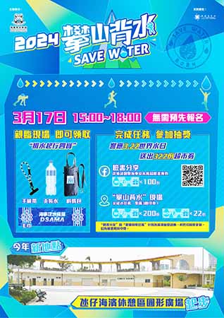 【特訊】為使公眾體驗缺水地區居民攀山越嶺擔水的艱辛,海事及水務局將於3月17日(星期日)下午三時至六時,在氹仔海濱休憩區圓形廣場及步行徑舉辦“2024攀山背水”活動。海事及水務局希望藉著揹水之旅,市民可以體驗到缺水地區人民攀山越嶺擔水的艱辛,並了解澳門的水資源情況,明白澳門食水的來之不易,從而讓大眾體會到珍惜點滴、節約用水的重要。為吸引本澳不同社區的居民參與節水活動,擴大節水宣傳效力,今年攀山背水移師氹仔海濱休憩區圓形廣場和步行徑舉行。活動無需預先報名,且不設名額限制,參加者於活動當日現場可獲得海事及水務局贈送的“2024攀山背水”裝備,包括手機帶、毛巾、斜揹包和支裝水,禮物先到先得,派完即止。
