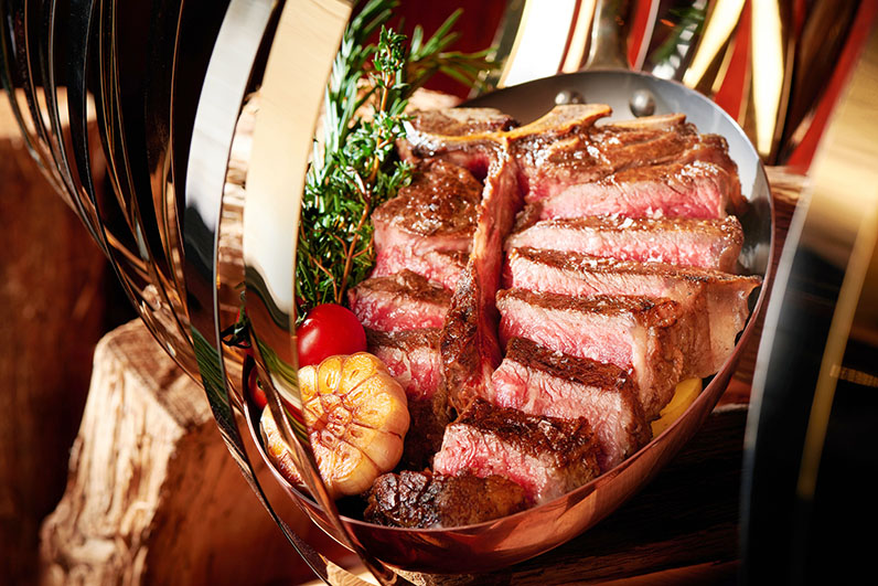 「御膳扒房」除了供應單點菜式之外,還提供可予三至四人分享的六道菜晚膳套餐,當中包含餐廳的大部分招牌菜式。餐廳的推介菜品包括份量十足、適合多人分享的 1,200 克厚切 T 骨牛扒、蘊含豐富油脂的聖海倫穀飼肉眼扒、極級牛肉他他、香焗蟹餅、龍蝦忌廉湯等;此外,偏好其他肉類的賓客亦可在菜單上找到其他主菜選擇,如羊架、燒雞、波士頓龍蝦、海鱸魚及海陸雙拼。