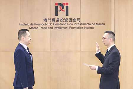 【特訊】澳門貿易投資促進局行政管理委員會執行委員梁華峰之就職儀式於昨天(4月10日)在中葡綜合體貿促局辦公點舉行。經濟財政司司長李偉農、經濟財政司司長辦公室主任辜美玲出席見證。儀式由貿促局行政管理委員會主席余雨生主持,局方領導及部門主管出席。