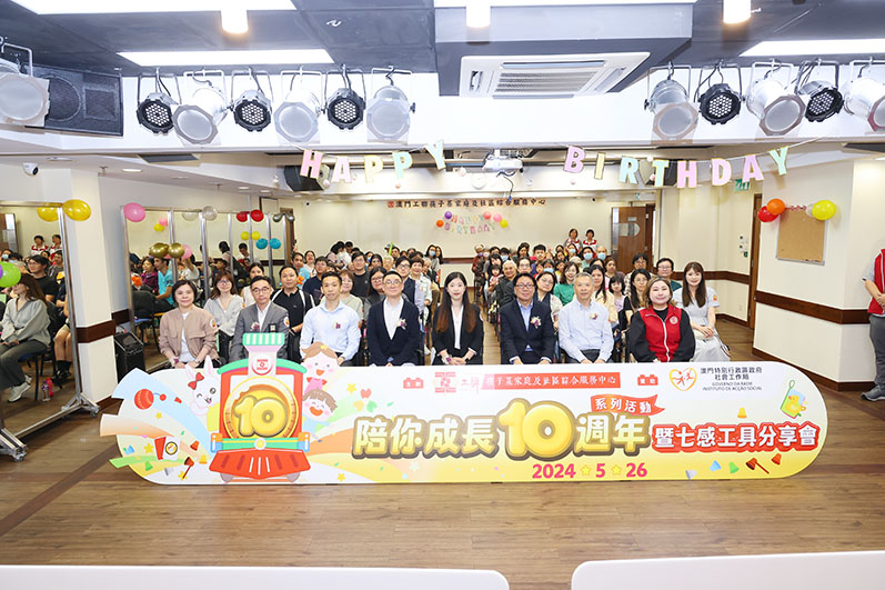 【特訊】由澳門工聯筷子基家庭及社區綜合服務中心主辦,澳門社工局贊助之「陪你成長10週年系列活動暨七感工具分享會」,已於五月廿六日(週日)下午二時半至五時半於該中心舉行。當日主禮嘉賓包括中央人民政府駐澳門特別行政區聯絡辦公室社會工作部助理李宇釩、社會工作局職務主管龍偉雄、澳門工會聯合總會副會長兼秘書長梁偉峰、治安警察局公共關係處處長李德輝、消房局一等消防區長梁偉成、司法警察局社區警務及公共關係處職務主管林振輝、教育及青年發展局親職教育中心主任張貴新、澳門工會聯合總會機構管理部副部長楊淑莊、澳門工聯筷子基家庭及社區綜合服務中心主任李翠芬。