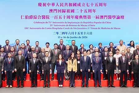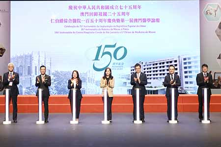 “慶祝中華人民共和國成立七十五周年、澳門回歸祖國二十五周年、仁伯爵綜合醫院一百五十周年慶典暨第一屆澳門醫學論壇”一連兩天,分別在文化中心及黑沙環衛生中心進行,並邀請了多位來自內地、香港和本澳的專家學者作醫學專題演講。