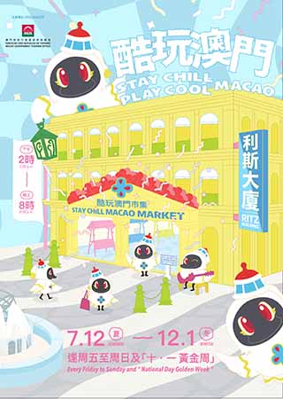 為配合“酷玩澳門”項目第二階段,多項周邊活動也將同期陸續啟動。包括“酷玩澳門市集”將於7月12日起逢周五至周日及十‧一黃金周每天下午2時至晚上8時在利斯大廈展覽廳舉行,現場將設約18個攤位,包括文創產品、手工藝品和輕食等,活動期間將安排表演、工作坊及與你“麥麥”見等,豐富遊澳體驗。