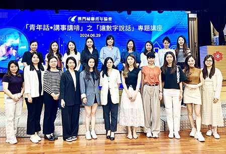 【特訊】為推動統計知識普及,提升公眾對官方統計的認識和應用,統計暨普查局日前應澳門婦聯青年協會邀請出席該會舉辦的「青年話‧講事講啡」之「讓數字說話」專題講座,介紹澳門官方統計工作及分享女性相關的統計數據,鼓勵青年人透過官方統計數字了解澳門社會經濟的發展情況。