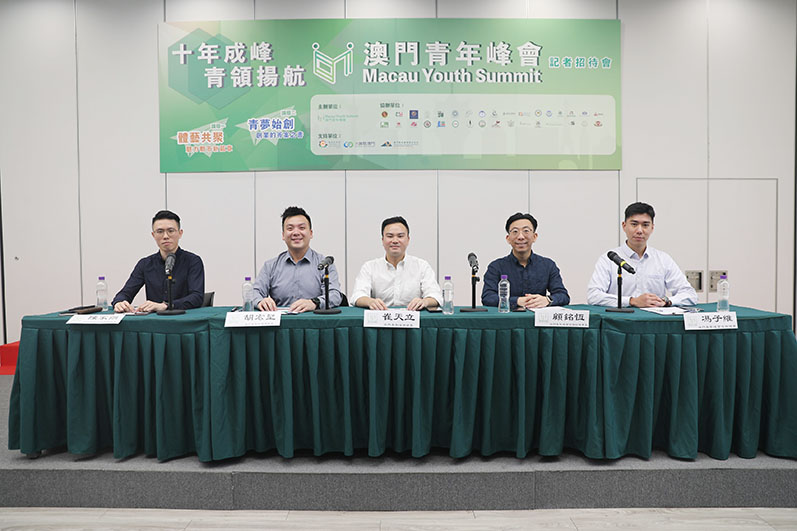 【特訊】—為彰顯2024年度計劃「啟動巨輪,翻越新篇」,豐富本澳青年國際視野,澳門青年峰會將於8月17日隆重舉行「十年成峰,青領揚航」年度論壇,並於昨日舉行新聞發佈會,公佈活動詳情。發佈會於澳門青年創業孵化中心舉行,出席代表包括有澳門青年峰會會長崔天立、理事長胡宏堅,以及政策研究組項目統籌顧銘恆、成員陳家朗及馮子維。