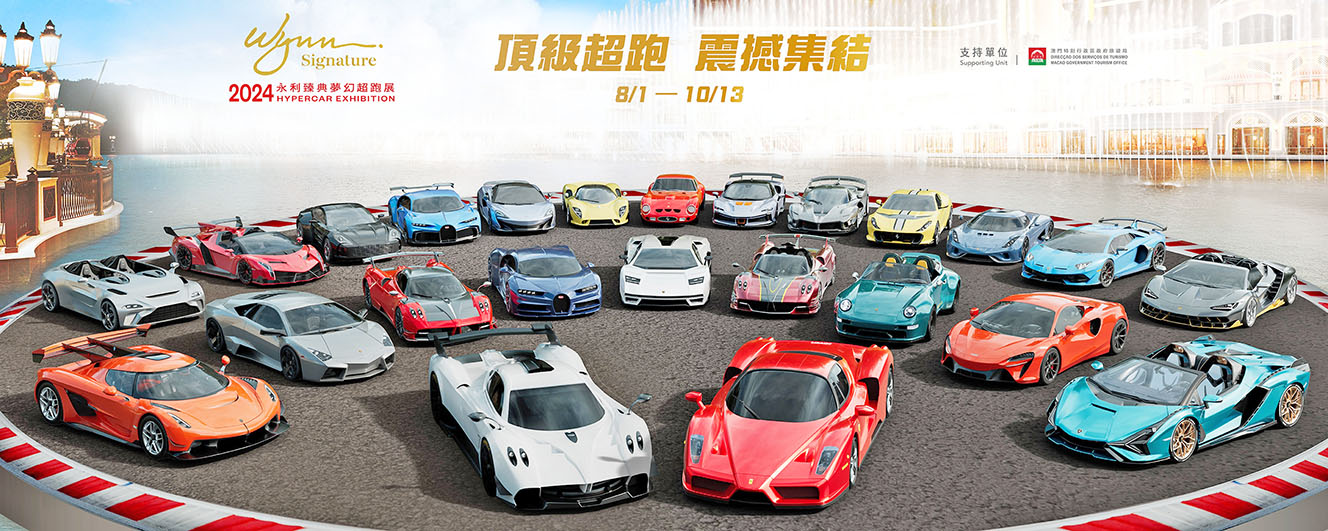 【特訊】獲澳門特別行政區政府旅遊局支持,永利渡假村旗下精緻體驗品牌 「Wynn Signature 永利臻典」由即日起至 10 月 13 日期間在永利澳門及永利皇宮呈獻「2024 永 利臻典夢幻超跑展」,展出 30 輛舉世罕見的傳奇超跑,包括 Apollo、阿斯頓·馬丁(Aston Martin)、布加迪(Bugatti)、De Tomaso、法拉利(Ferrari)、保時捷改裝車款品牌 Gunther Werks、柯尼賽克(Koenigsegg)、林寶堅尼(Lamborghini)、麥拿倫(McLaren)及帕加尼 (Pagani)等傳世傑作,總價值高達 15億港元,盛邀公眾免費觀賞,近距離感受這些外型時尚、 性能卓絕的稀世臻品。這些赫赫有名的傳奇超跑大多為首次在澳門亮相,陣容之鼎盛前所未有, 完美展現「只此一刻 盡在永利」的稀世尊貴,讓賓客體驗永利專屬的國際化精彩探索之旅,以 「旅遊+」模式展現澳門作為「世界旅遊休閒中心」的多元魅力。