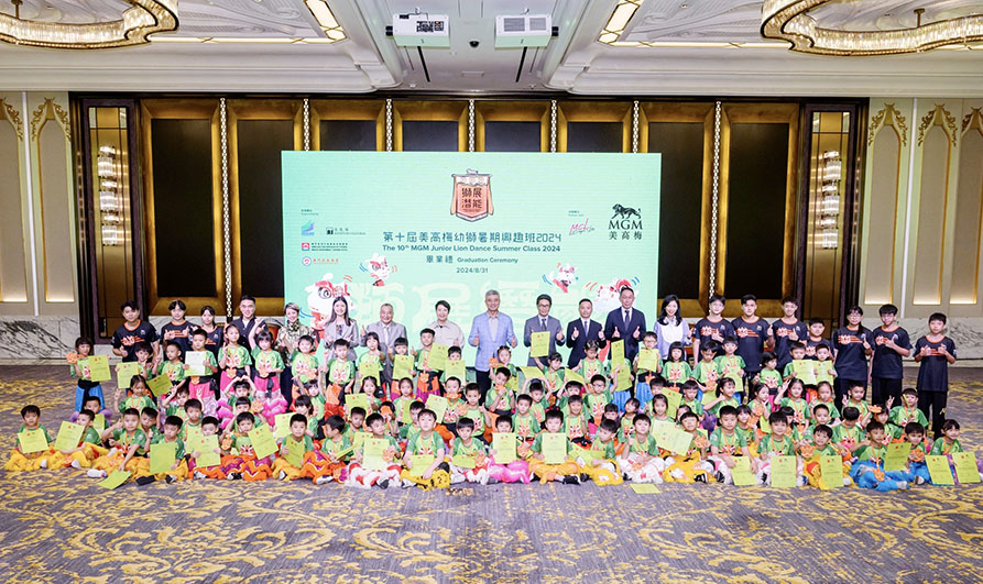 第十一屆「獅王爭霸國際賽2024 — 美高梅盃」新聞發佈會暨第十屆「美高梅幼獅暑期興趣班2024」畢業禮8月31日於美獅美高梅舉行,會上宣佈本屆獅王爭霸國際賽將於10月5至6日假媽閣廟前地盛大開鑼,同場也為本年度幼獅暑期興趣班的100名學員舉行畢業禮。活動主禮嘉賓包括:澳門特別行政區政府文化局局長梁惠敏,旅遊局代局長程衛東,體育局澳門格蘭披治大賽車及大型體育活動廳代廳長黃家權,教育及青年發展局小學及幼兒教育處處長賈詩燕,海事及水務局海事博物館館長薛啟善,亞洲龍獅運動聯合會主席及澳門武術總會理事長陳永傑,和美高梅中國控股有限公司總裁及首席營運官王志琪。
