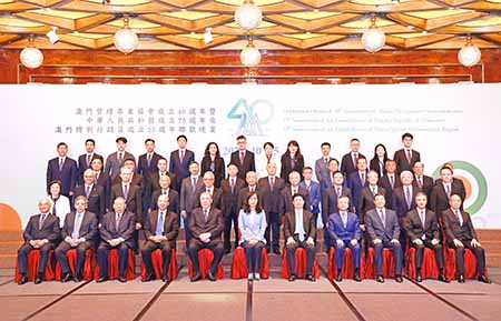 澳門行政長官代表、社會文化司司長歐陽瑜,澳門第三、第四任行政長官崔世安,中聯辦副主任呂玉印,外交部駐澳特派員公署特派員劉顯法,澳門立法會主席高開賢,澳門運輸工務司司長羅立文,審計署審計長何永安,政策研究和區域發展局長張作文,勞工事務局長黃志雄,經濟及科技發展局長戴建業,以及多位行政會委員、立法會議員出席。