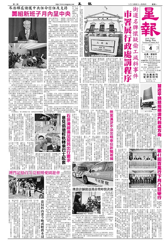 【特訊】澳門中聯辦發言人發表談話表示,習近平主席會見獲中央政府任命的澳門特別行政區第六任行政長官岑浩輝時所作重要講話,鼓舞和指引澳門續寫「一國兩制」成功實踐嶄新篇章。