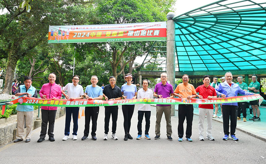 【特訊】為慶祝中華人民共和國成立七十五周年、澳門特區成立廿五周年,澳門中華總商會於日前在松山跑步徑舉行二零二四中總「雙慶盃」環山跑比賽。中央駐澳聯絡辦公室協調部部長仇昱、體育局體育發展廳廳長鄒國偉、澳門中華總商會理事長馬志毅、副理事長崔世平、余健楚、黃樹森、徐達明、莫志偉、葉兆佳,文康部部長陳隆成及熊貓體育會副會長胡良主持起步禮。出席活動的還有該會常務理事霍麗斯、黃仁民、林偉濠及秘書長區榮智等。仇昱、馬志毅並為接力賽開賽鳴槍和主持頒獎。