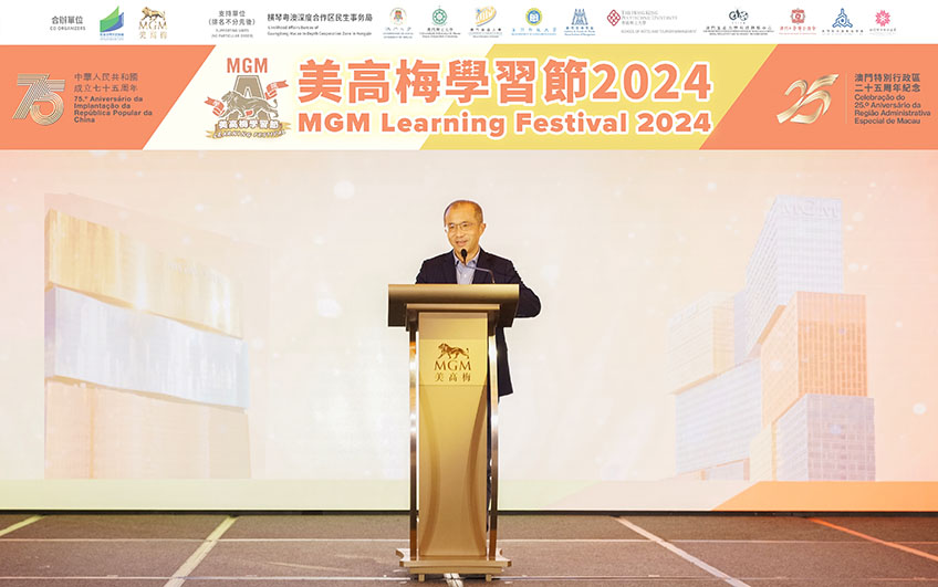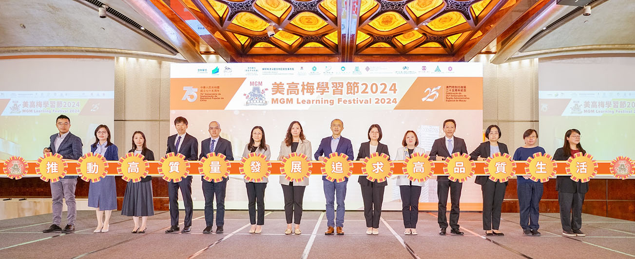 「美高梅學習節啟動儀式暨『澳門回歸祖國25年發展回顧』專題講座」於11月12日在澳門美高梅宴會廳舉行,出席嘉賓包括美高梅中國控股有限公司總裁及執行董事馮小峰,教育及青年發展局非高等教育廳廳長蔡敏芝,中央人民政府駐澳門特別行政區聯絡辦公室教育與青年工作部處長岑嘉儀,橫琴粵澳深度合作區民生事務局副局長馮方丹,美高梅人力資源執行副總裁余婉瑩,澳門管理學院院長唐繼宗,澳門大學工商管理學院綜合度假村及旅遊管理學系教授、博彩研究所所長馮家超,澳門理工大學博彩旅遊教學及研究中心副主任蕭宇寧,澳門科技大學酒店與旅遊管理學院助理院長張楊,澳門旅遊大學管理及專業發展學院講師胡詠斯,澳門生產力暨科技轉移中心高級經理李藹倫,澳門婦女聯合總會副理事長兼秘書長庄玲玲,澳門街坊會聯合總會副理事長謝美玲,以及澳門工會聯合總會業餘進修中心校長裴承賢。專題講座由馮家超教授擔任主講嘉賓,以「澳門回歸祖國25年發展回顧」為題,為參加者介紹澳門回歸以來的重大發展,並分享他對旅遊業發展趨勢的見解,有200名美高梅團隊成員和高等院校學生參加。