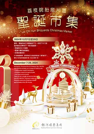 為豐富片區文旅元素,12月期間逢周六、日及12月24日至25日下午1時至6時將設有聖誕市集,內容包括特色遊戲攤位、餐飲設施、文創市集、藝文表演、兒童騎聖誕鹿遊戲及聖誕裝飾等;由文化局主辦,銀河娛樂集團合作舉辦的中國與葡語國家電影展“戶外放映-澳門影像‧新勢力”將於12月7日下午4時在荔枝碗船廠片區上映,以本年度4部“澳門影像新勢力”短片為主角,讓參與者感受本地影人用鏡頭表現澳門不同面貌的影像創作力,已獲錄取人士敬請準時入場。