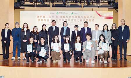 【特訊】澳娛綜合度假股份有限公司(「澳娛綜合」)全力支援澳門本地中小企業發展,2024年成立「澳娛綜合中小企學院」,並與澳門理工大學合辦學院徽章設計比賽,活動獲澳門中華總商會擔任支持單位,旨於為新生代提供展現潛能的平台,同時推動旅遊休閒與文化創意產業融合發展。頒奬禮日前在理大舉行,澳門理工大學副校長李雁蓮,澳門中華總商會副理事長許樂敏,澳娛綜合保安監察、環境、社會及管治總裁洪克偉等,與逾100名理大設計系師生出席。