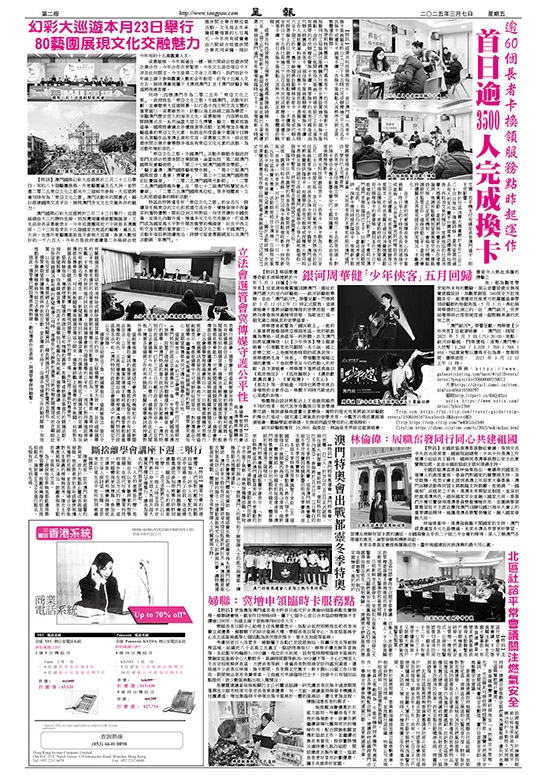【特訊】更換舊版澳門通長者卡昨首日起可於全澳逾60個服務點免費辦理。婦聯總會稱,截至昨日傍晚6時,屬下七個中心首日合共協助辦理換卡手續逾1200宗,另線上線下查詢接待800多人次。