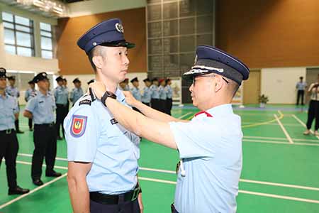 【特訊】昨(27)日上午,治安警察局在總部大樓舉行首席警員晉升儀式,儀式由吳錦華局長主持,梁慶康副局長、伍素萍副局長、魏瑞斌代副局長及各部門主管出席。儀式上,各位晉升的首席警員正式戴上新的肩章,標誌着晉升人員肩負起更大的責任和使命擔當。