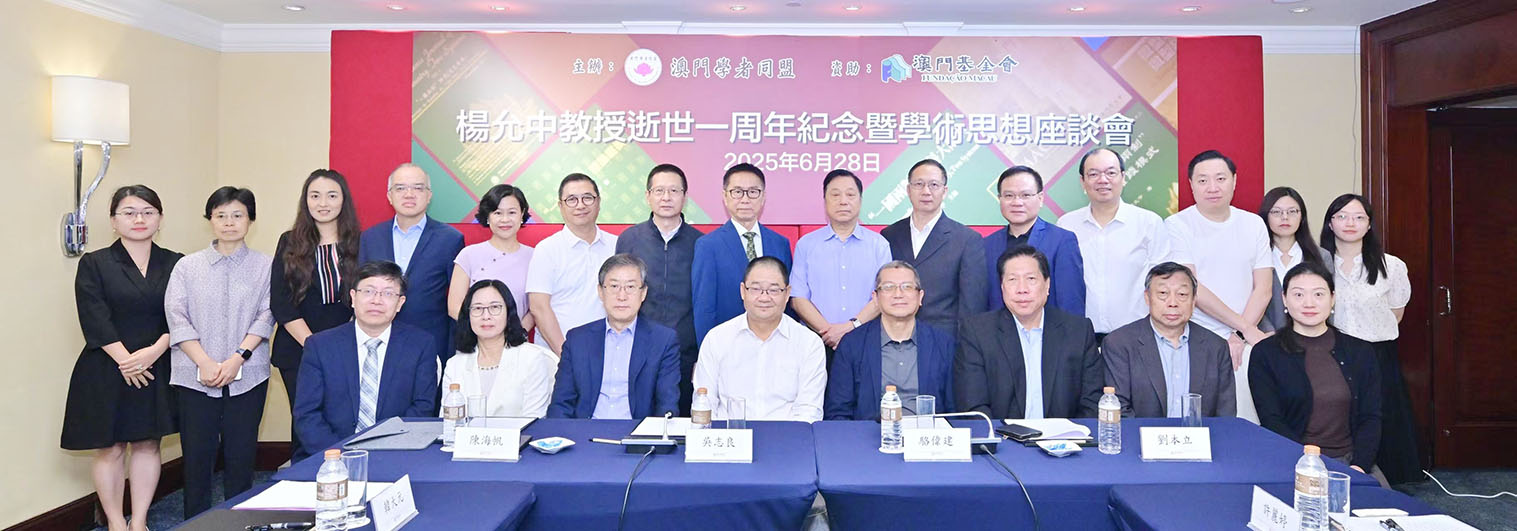 2025年6月28日,澳門學者同盟在澳舉辦創會會長楊允中逝世一周年紀念暨學術思想座談會。座談會由學者同盟會員大會主席駱偉建主持,中國人民大學“一國兩制”法律研究所所長韓大元教授和法學院胡錦光教授、深圳大學港澳基本法研究中心主任鄒平學,以及澳門學者同盟會員大會創會主席、澳門基金會主席吳志良博士,中聯辦研究室處長許麗婷,學者同盟部分架構層成員和楊允中教授親屬參加座談會。本次座談會由澳門基金會贊助。