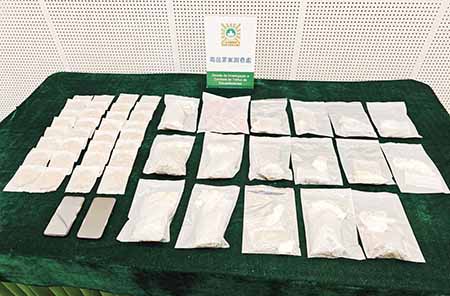案情指出,司警一直有分析經澳門機場及鄰近地區的販毒情況,透過機制定期抽查。前晚約七時,涉案的賀姓男子與其妻向女及一名未成年兒子,從泰國最谷飛抵澳門。司警人員發現賀姓男子形跡可疑,將其截停,結果在其穿著的改裝內褲內,起出三百二十一克多的大麻花,三百三十八克大麻植物碎片,同時在其行李袋內起出四盒有大麻成份的曲奇(重二千八百多克),及一包含大麻成份的軟糖(重八百二十九克)。