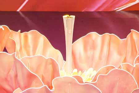 火種盆名為“鼎盛同心”,又名“同心鼎”,設計靈感源自古代瓷器“花觚”,既承載了傳統禮器的莊重典雅,又彰顯了當代藝術的審美追求。底部整體為圓柱支撐,上層兩部分口徑逐次增大,寓意在團結一心的努力下,祖國一步一步強大;頂部為燃燒器,頂端焰口三瓣禮花同根共綻,寓意三地人民心手相牽,共同邁向繁榮新時代。