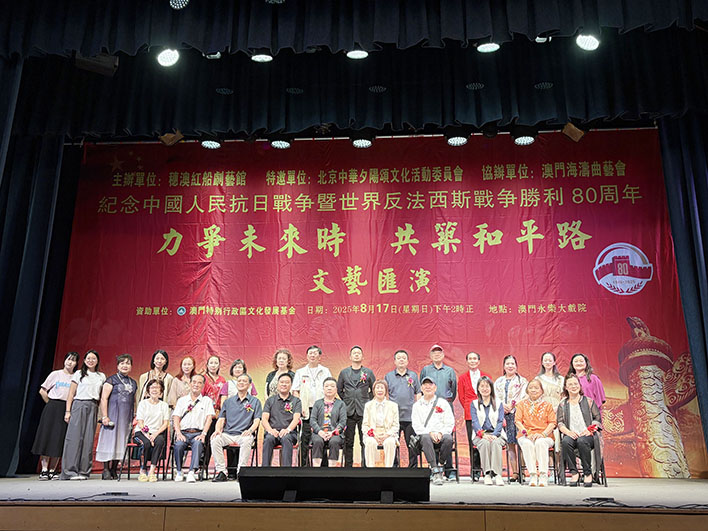【特訊】日前,由穗澳紅船劇藝館主辦、澳門海濤曲藝會協辦、澳門特別行政區政府文化發展基金資助的「中國人民抗日戰爭暨世界反法西斯戰爭勝利80周年—力爭未來時,共築和平路」文藝匯演圓滿落幕。活動旨在以文藝之光,銘刻歷史、致敬英烈,呼籲社會各界在人類命運共同體的時代,要珍視和平,共創未來,增進居民愛國情懷。
