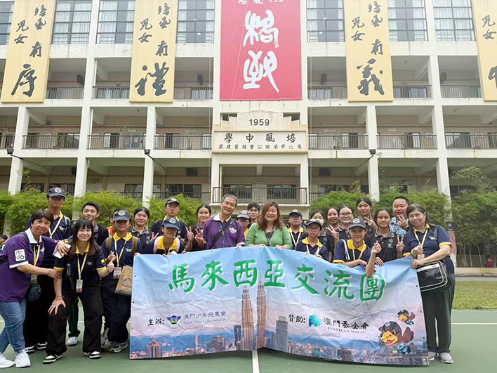 當日一行人先抵達馬六甲區首屈一指的培風中學進行交流訪問,受到黃雪萊校長、顏志勤和伍俊威主住等熱情接待。期間,澳門學員被安排與該校學生一起上不同類型的興趣課,兩地學生顯得特別雀躍興奮,全程投入這次難能可貴之交流機會,並紛紛交換通訊,以延續友誼。