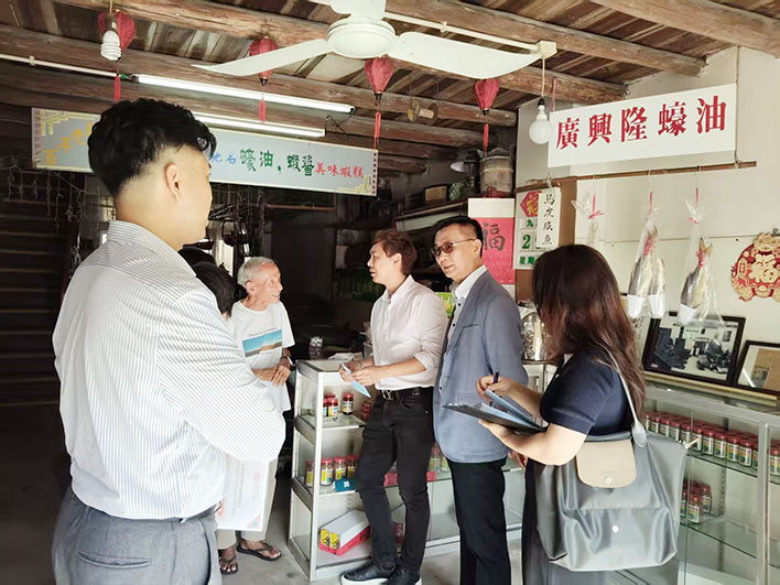【特訊】為了讓廣大老店企業主清晰了解2025百年傳承店、第二屆澳門特色老店評定活動的相關內容,活動支持單位澳門經濟及科技發展局副局長鄭曉敏、商標註冊處何梓洋處長聯同主辦單位澳門連鎖加盟商會主席黃仁民、第二屆特色老店評定委員會秘書長李子禹、副秘書長梁廟婷等深入氹仔舊城區、官也街及路環社區一帶向潛在老店介紹評定工作以及申請手續和文件要求。出席成員還包括澳門口述歷史協會甄桂芳副會長及第二屆特色老店扶持小組組員伍麗萍等。